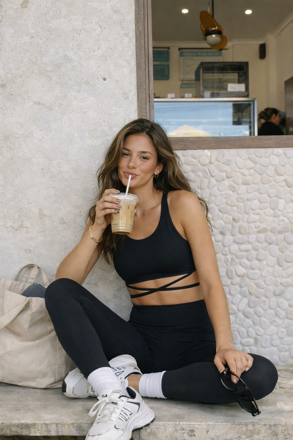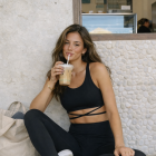 El top cruzado estiliza la cintura y realza el torso, mientras el legging de tiro alto moldea sin apretar, creando una silueta limpia, femenina y fuerte.